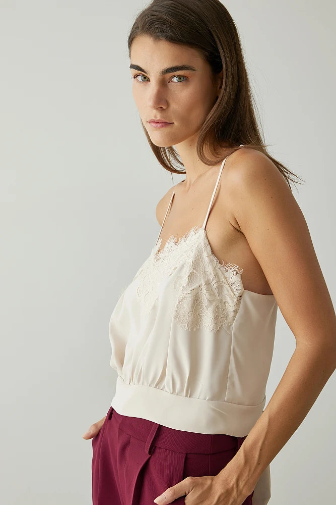 Blouse crop top élégant à bretelles ajustables,