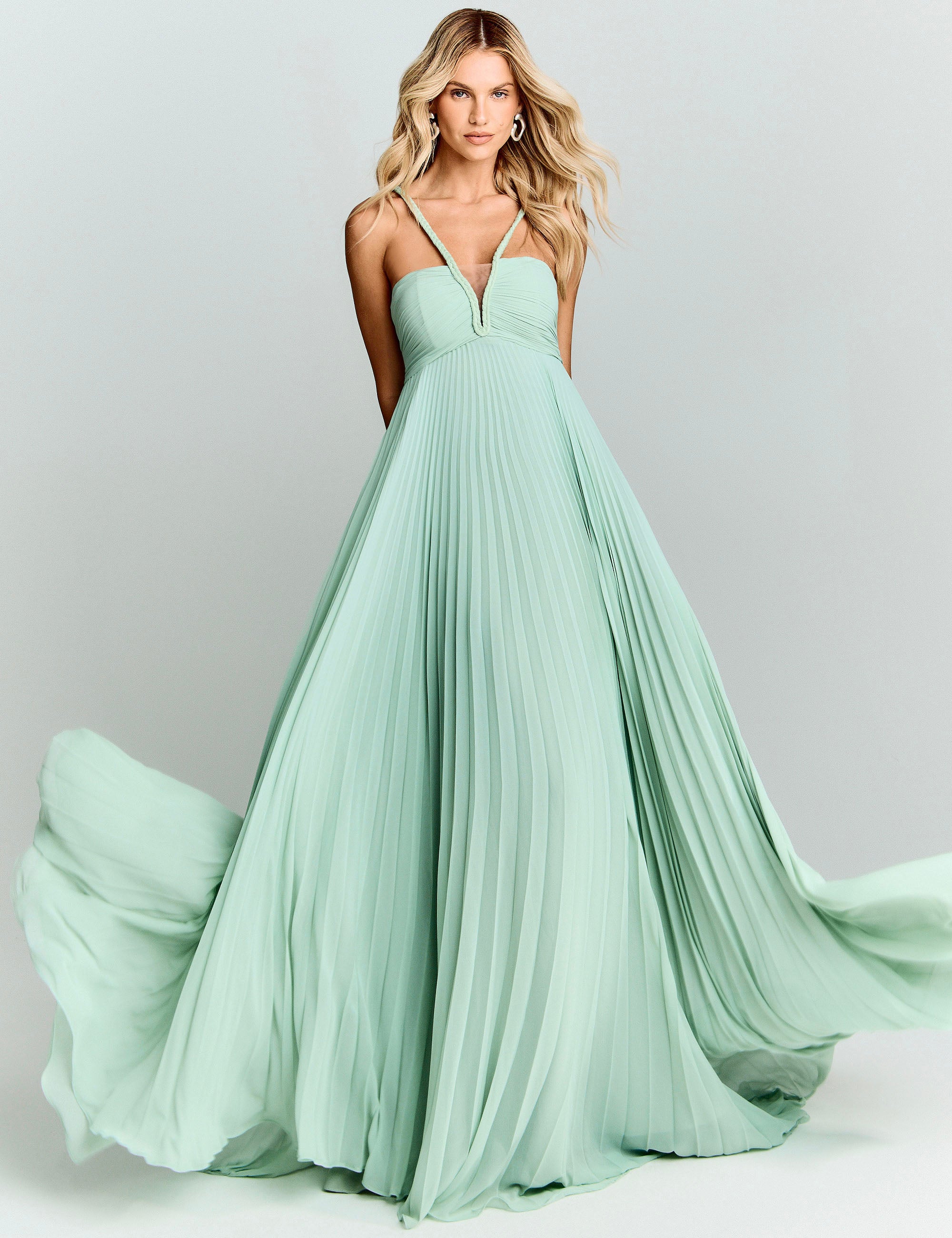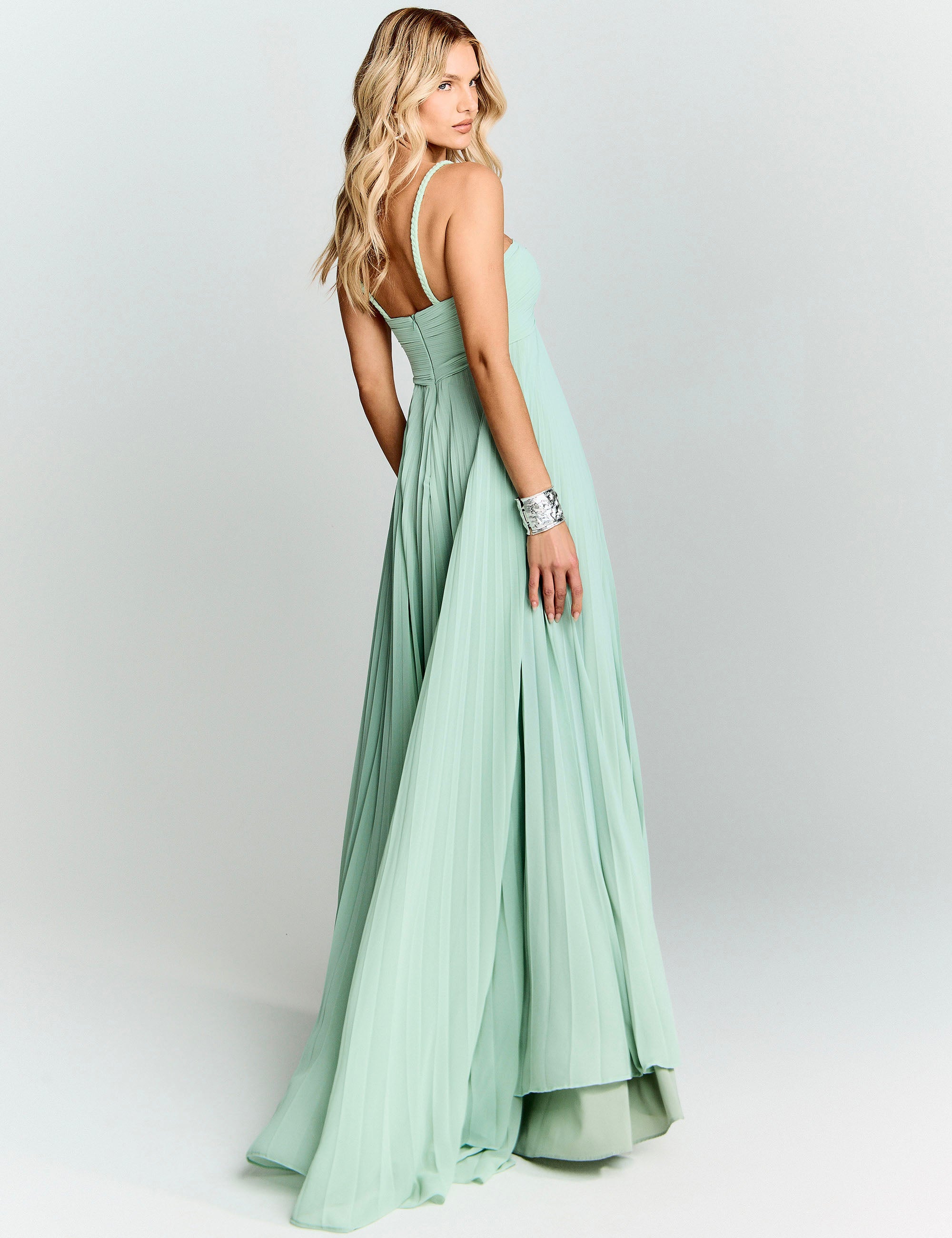 Incarnez l'élégance intemporelle avec cette robe de soirée aux lignes épurées. Le croisement subtil du décolleté en V met en valeur la silhouette tandis que le drapé du buste crée une harmonie gracieuse. Les plis délicats de la jupe offrent une fluidité captivante à chaque mouvement, transformant chaque instant en moment mémorable. Une création raffinée pour les événements qui méritent votre plus belle allure.