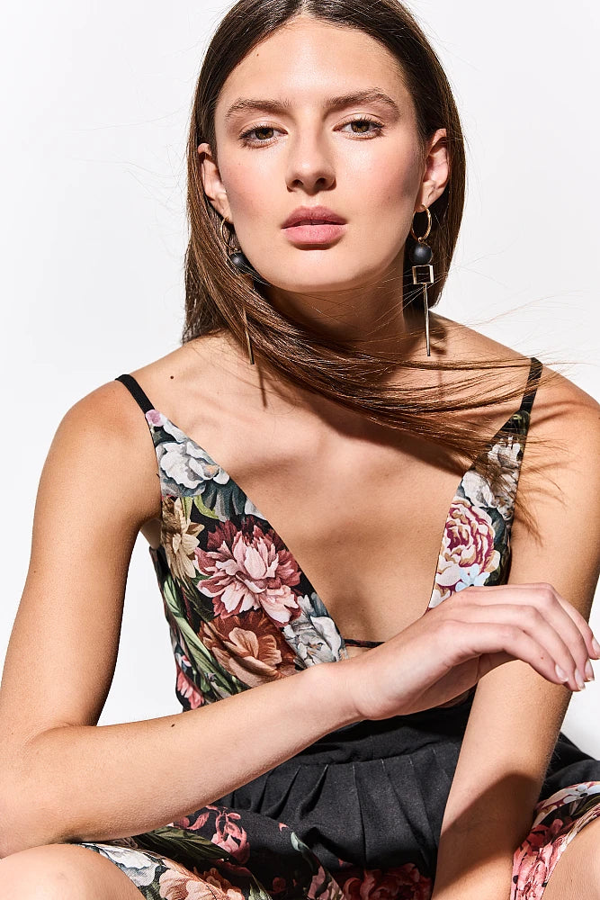 Haut ajusté avec pinces floutantes sur le décolleté.
