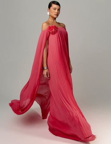 Cette robe de soirée longue, plissée et raffinée, incarne l'élégance parfaite