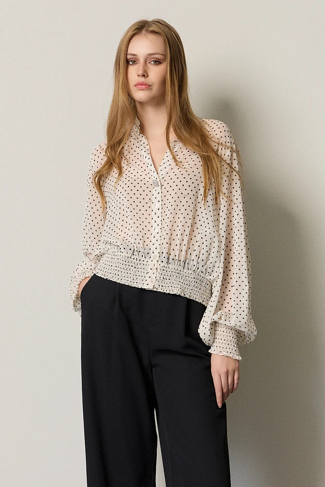 Chemisier en voile semi-transparent orné de petits pois rétro,